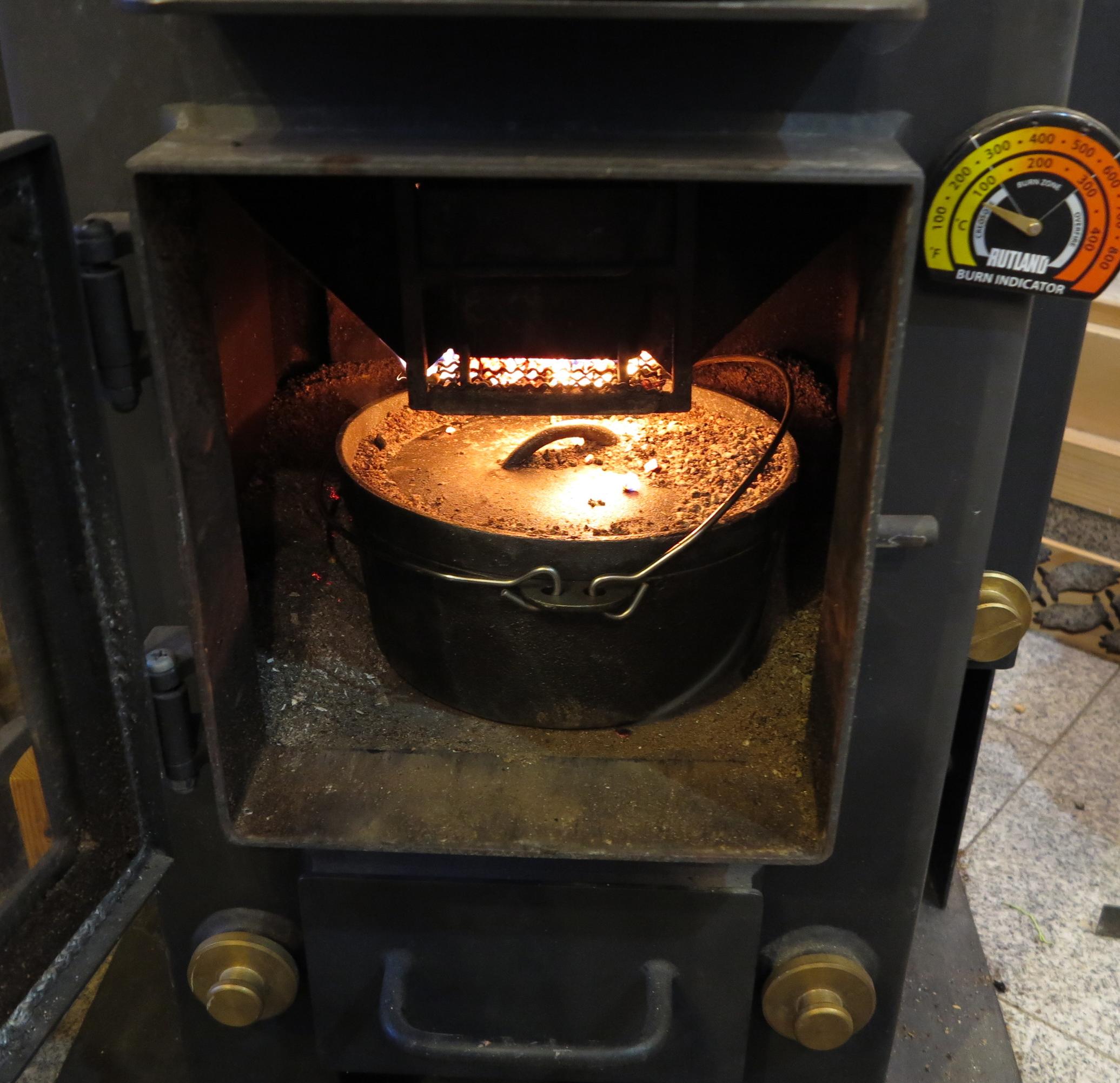 端材、廃材処理と暖房の一挙両得の優れものです。また、この長尺用投入口は取り外し可能で、付属のふたをつけると大きな鍋等が置けるようになります。